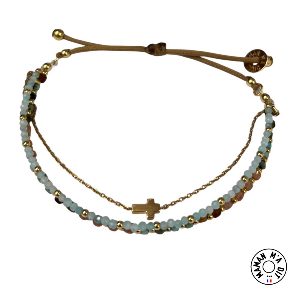 Bracelet perles 3 en 1, mini croix. Couleurs aléatoires mais on reste dans les mêmes tons