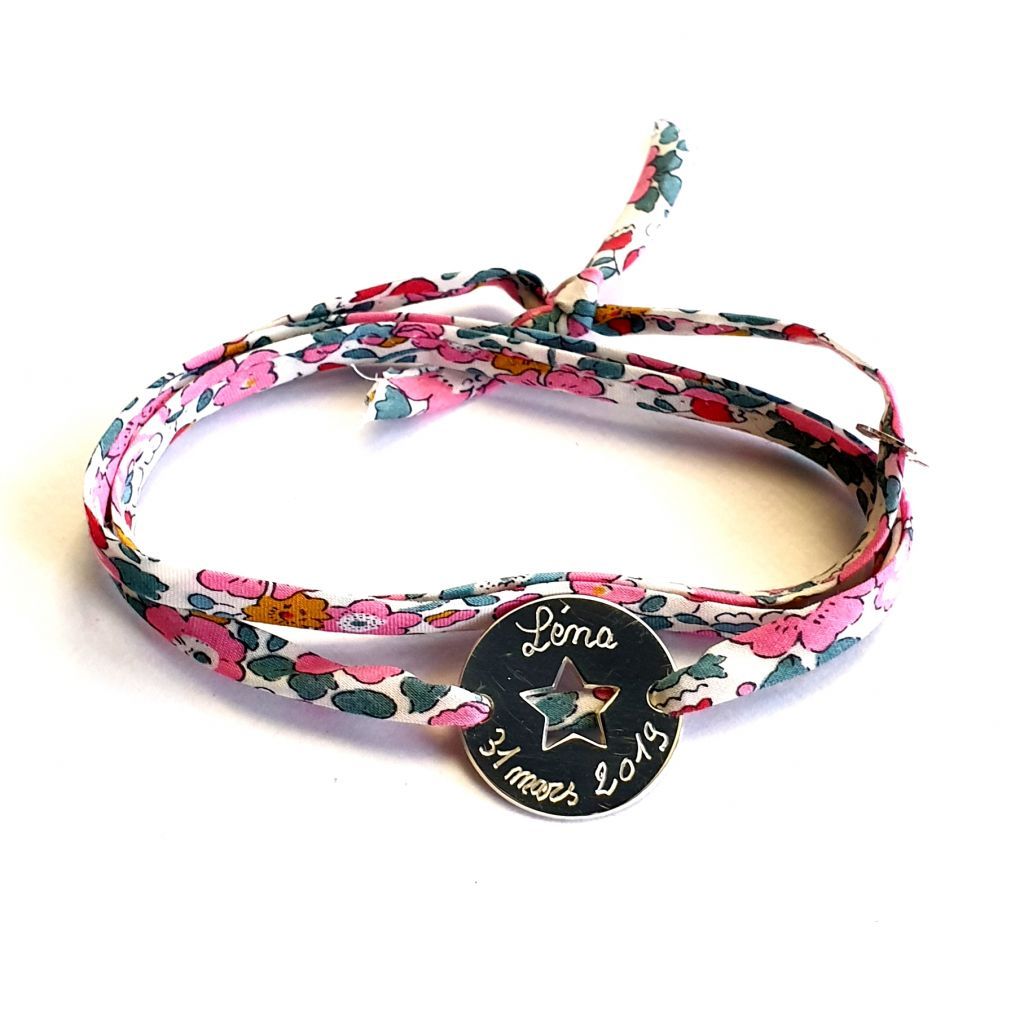 Bracelet Liberty Spagethi étoile  20 mm sur 3 tours finition nœud simple ou fermoir (en option).