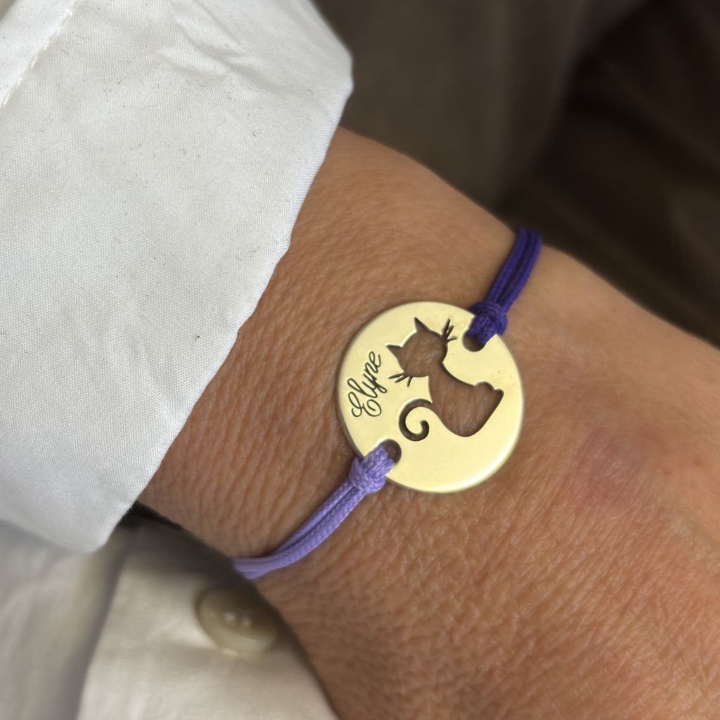 Bracelet chat ajouré dans jetons 20 mm en argent . Finition au choix